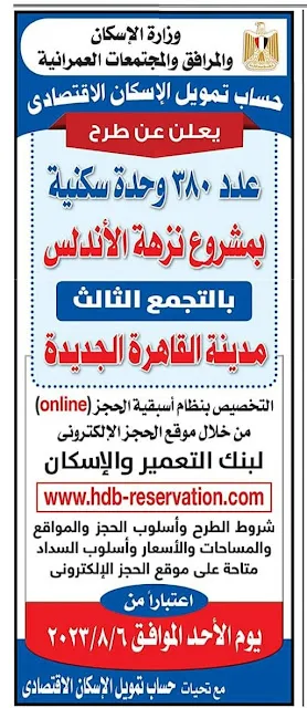 رسمياً تم فتح باب حجز شقق سكنية .. بمشروع نزهة الأندلس بمدينة القاهرة الجديدة بمساحات تبداً من 130 الى 150 متر